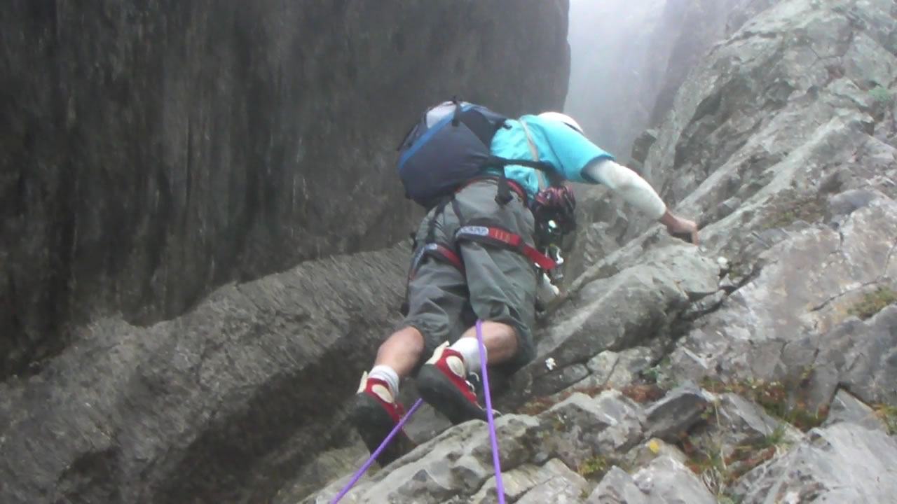 La cima es preciosa por sus vistas.Estamos en el centro geográfico de la peninsula. Jesús Yarza se siente feliz y comenzamos el descenso instalando un rapel de 40 metros. Pero el caso es que todo cristo utiliza nuestras cuerdas, vascos, murcianos, andaluces, etc, todo el mundo mete su descensor en nuestras cuerdas. ¡Gracias "maños"! ¡Muy bien "maños"!